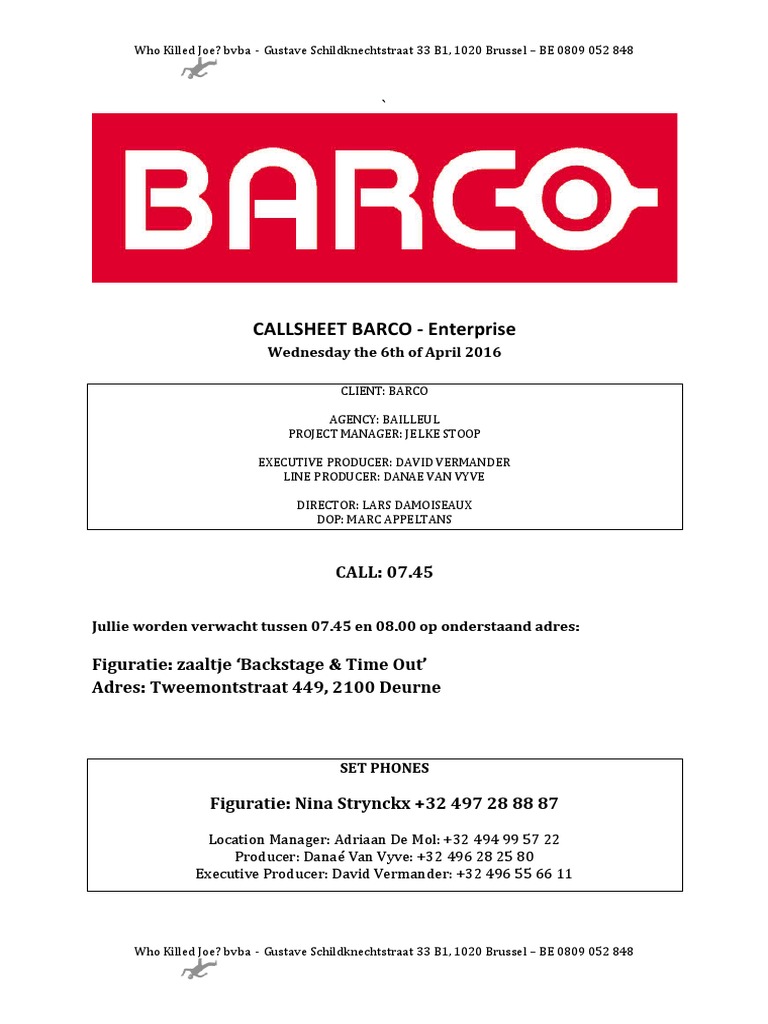 F258d00a Callsheet Barco Enterprise Woe 6 April Figuranten PDF